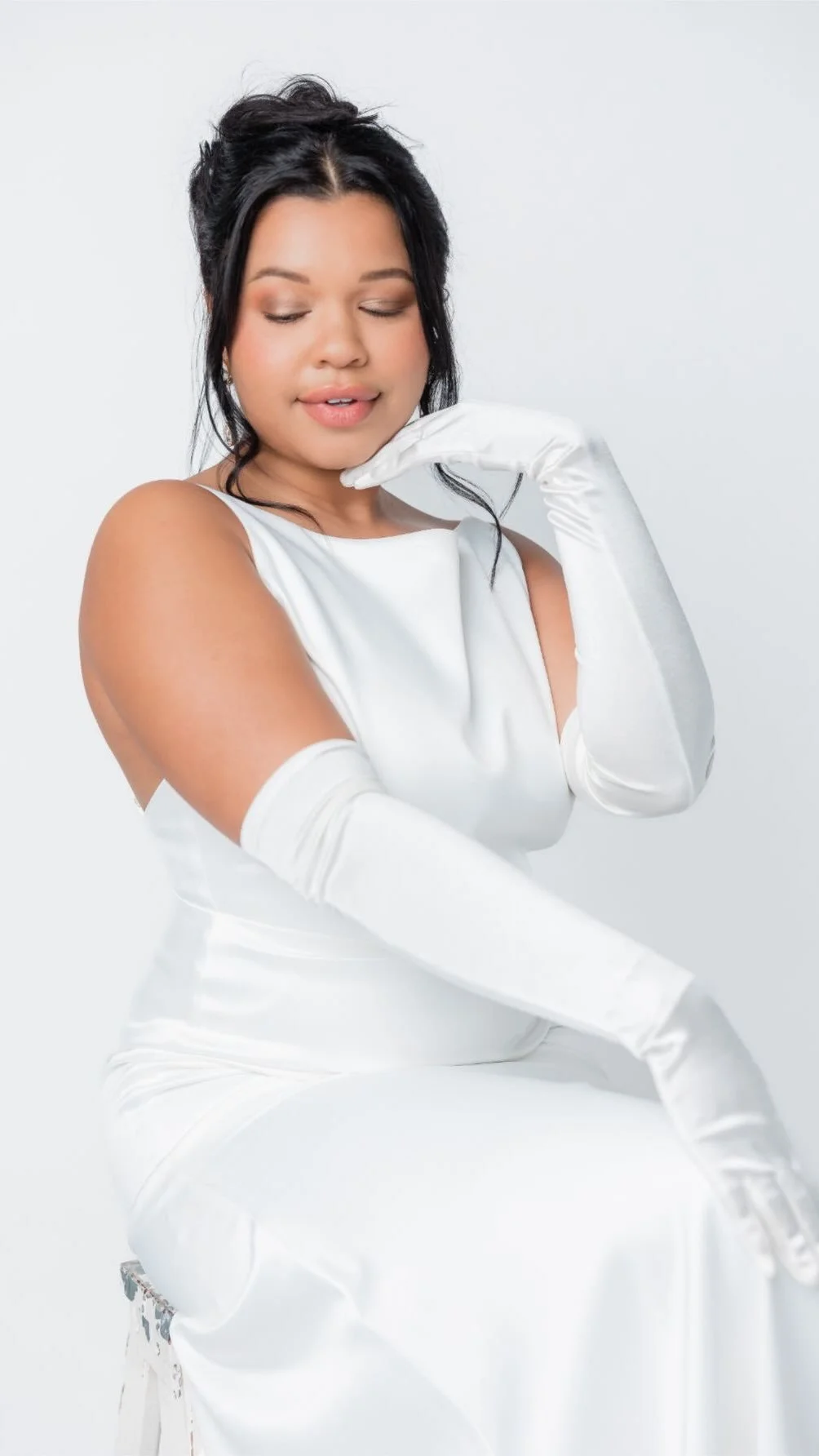 Effortless elegance meets Greek goddess inspired beauty in Style D4269, a minimalist matte satin wedding gown designed for the modern bride. The strapless bodice features soft, draped crisscross detailing that flatters the figure, creating a look that is both timeless and sophisticated. From the structured Basque waist, the classic A-line skirt flows gracefully over the hips, draping beautifully with every step. This chic wedding dress is a fusion of simplicity and refinement.