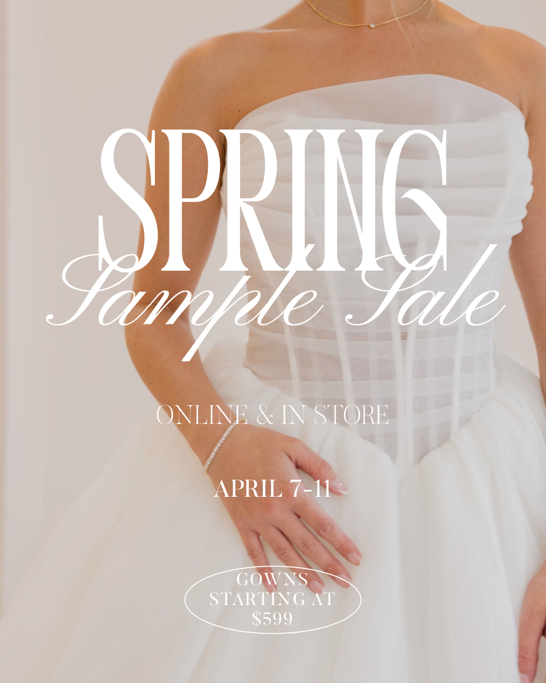 Spring is in the air and so is one of our favorite events of the season! Mark your calendars for our Spring Sample Sale. From April 7–11, join us in store and online to shop discounted designer wedding gowns and bridal accessories.